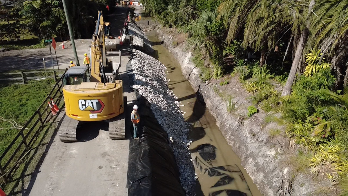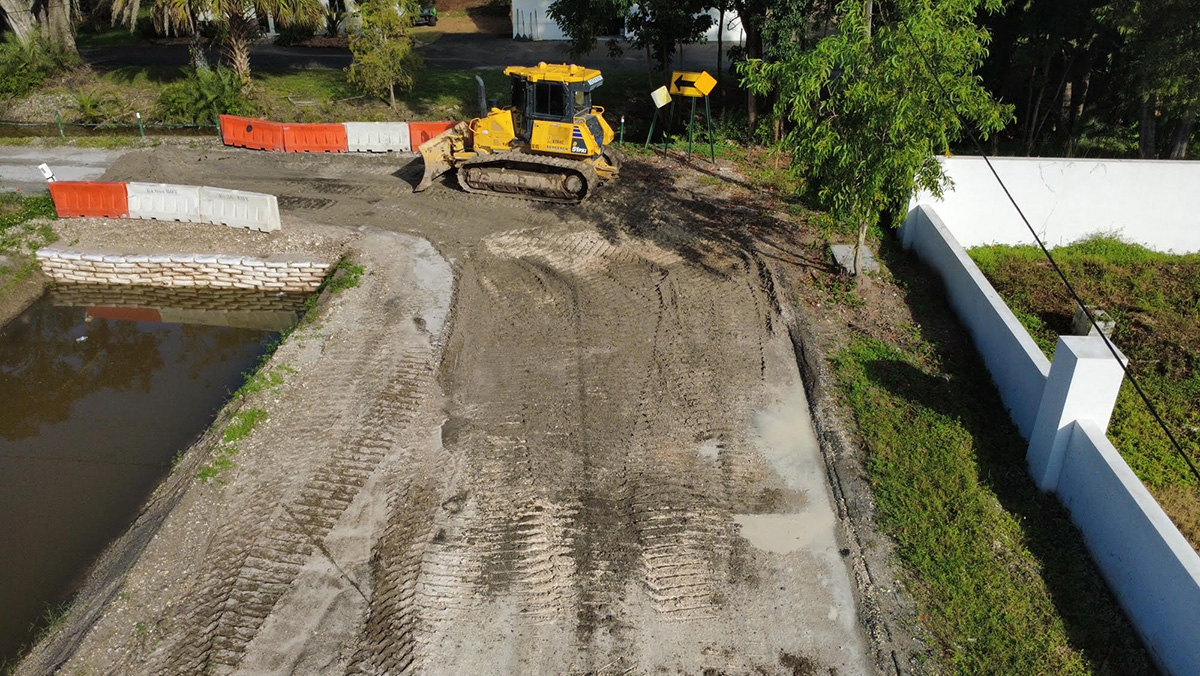BLD will dredge the roadside canals to remove sediment to improve water flow and reduce the risk of flooding. We will also clear and grub the canal banks of vegetation to improve drainage and prevent obstruction. Damaged or outdated culverts will be replaced to enhance stormwater management. The canal banks will be restored with Earthwork and sod to prevent erosion and provide long-term durability. The current stormwater system will be upgraded with a new outfall structure and two stormwater pumps to improve the neighborhood’s flood control.